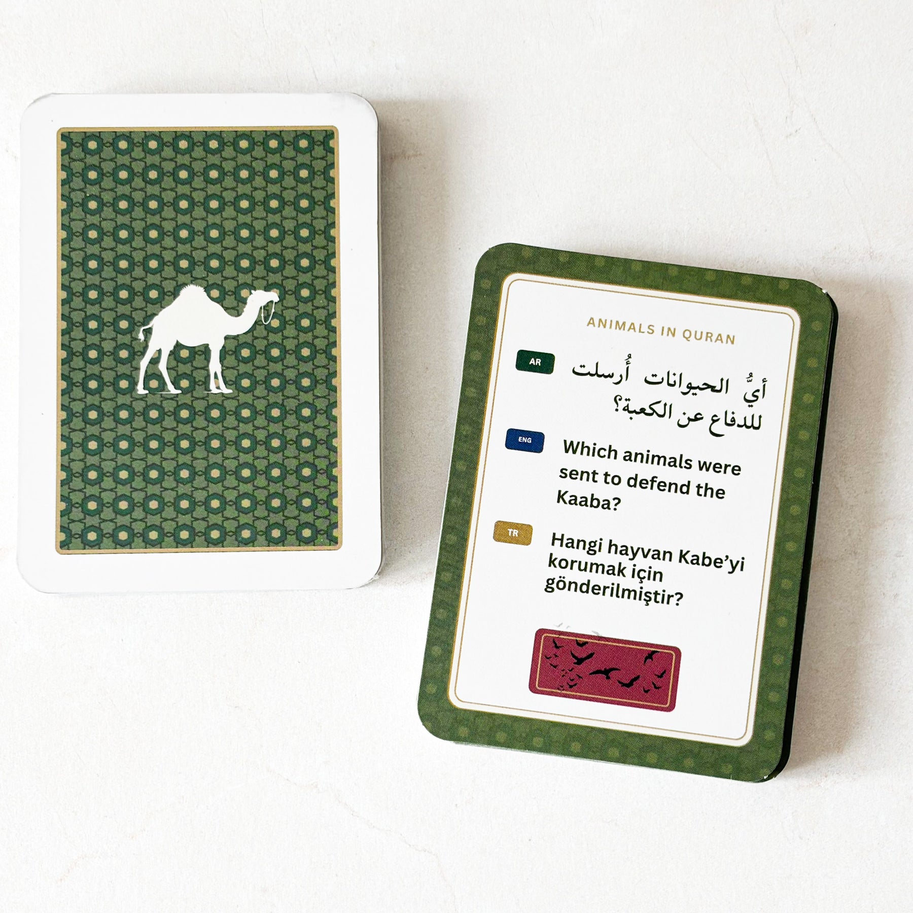 Islamic Knowledge Quest: Sahaba of the Prophet & Animals in The Quran. Questions are in English, Arabic, and Turkish. Perfect for family nights, school activities, and gatherings.