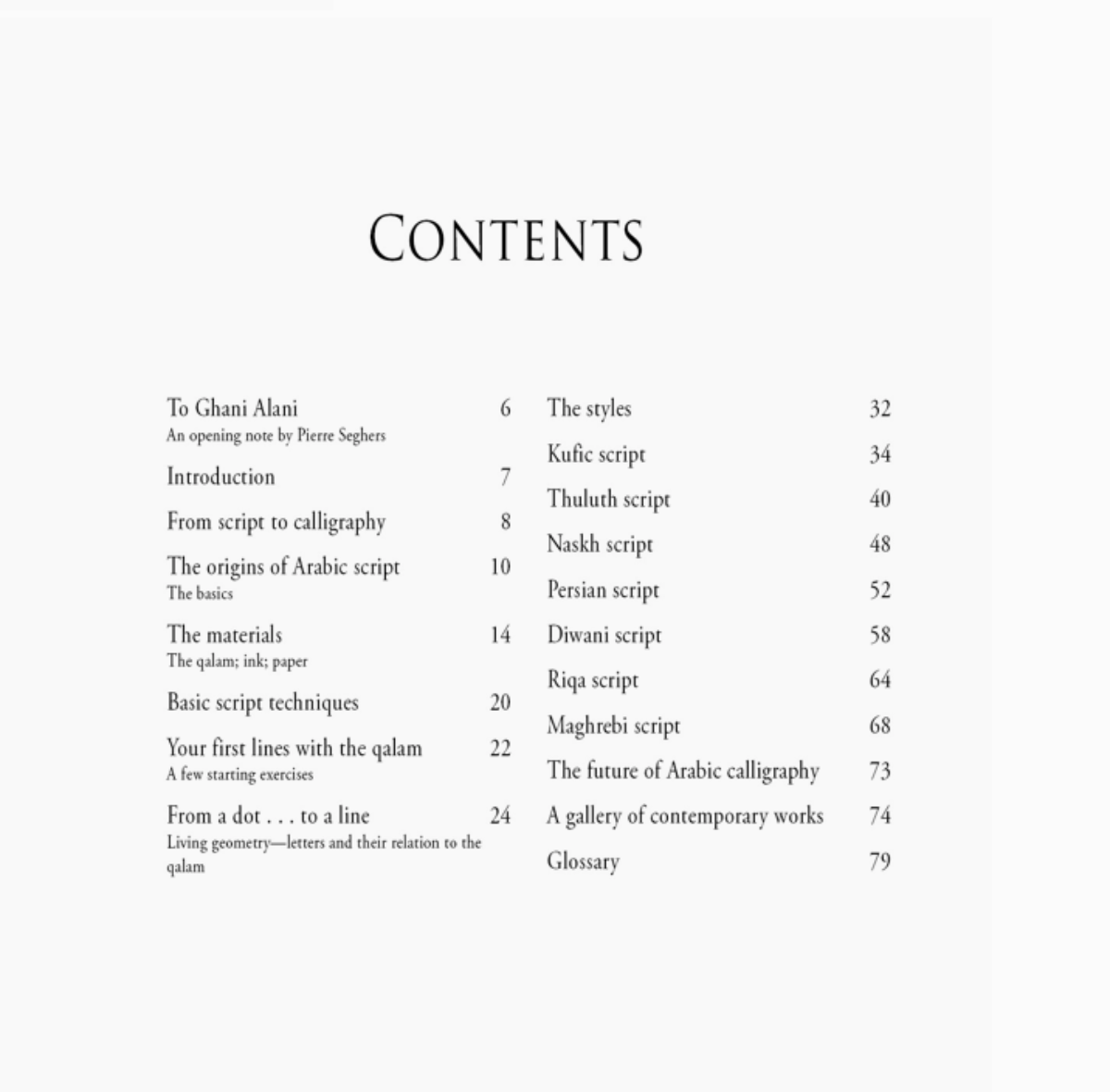 With a photo-rich teaching method that's welcoming to everyone, this introduction helps you use ink and a qalam—a traditional reed pen—to create flowing, timelessly decorative lines of Arabic script. The book begins with the history behind this art that decorates writings and architecture worldwide. Master calligrapher Alani next shows you how to choose the materials and prepare your tools. After a quick introduction to how the Arabic language works, he guides you through exercises to help you successfully write the 28 Arabic letters, join them together, and finally assemble them into phrases. Once you have mastered the basics, explore creating graphic compositions in each of seven major styles (Kufic, Thuluth, Naskh, Persian, Turkish, Riqa, and Maghrebi). Sometimes it takes years to be able to decipher a composition, but meanwhile, you can enjoy its aesthetic beauty. 80 pp | 304 color & b/w image
