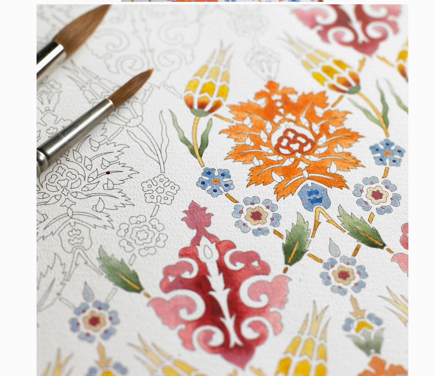 Artists Colouring Books contain 16 different sheets (format 25 x 34.5 cm;10 x 13.5 in) of superior acid-free drawing paper printed with exceptional designs in very light lines. The printing is done in such a way that depending on the techniques