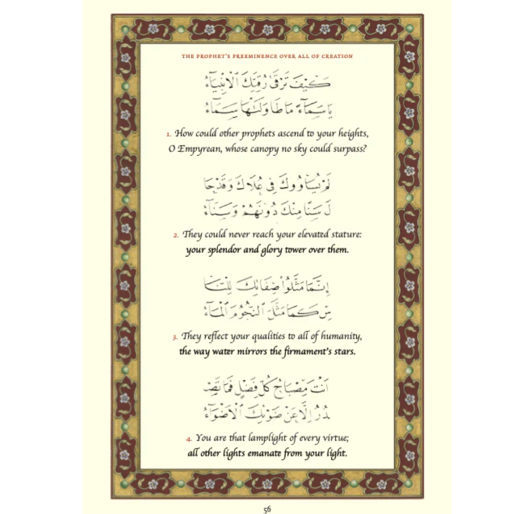 “After the Qur’an and the prophetic sayings, the highest level of eloquence to which any Arab can aspire is realized in Arabic poetry. Thus, poets in subsequent generations invariably expressed their love for the Prophet ﷺ in marvels of verse that poured forth from their tongues and pens like pearls unbound…Having spent over fifty-five years of my life immersed in the poetry of Imam al-Buṣīrī, listening to the Burdah and Hamziyyah sung in weekly gatherings, and having penned two poetic expansions myself, I can say that Shaykh Hamza’s translation deserves both praise and celebration.”