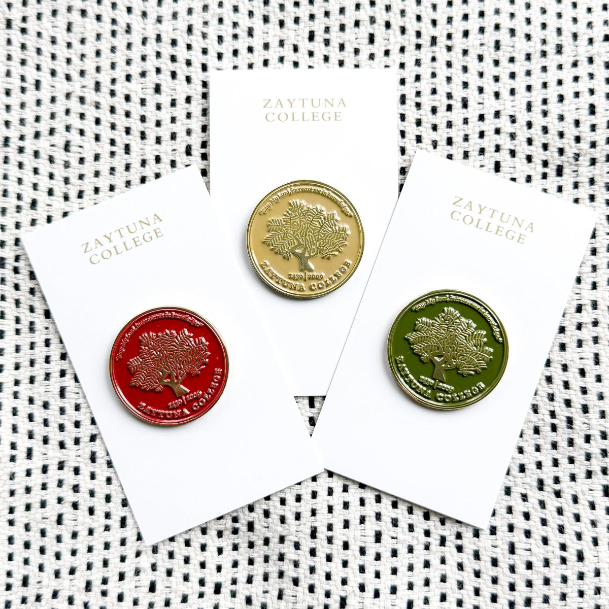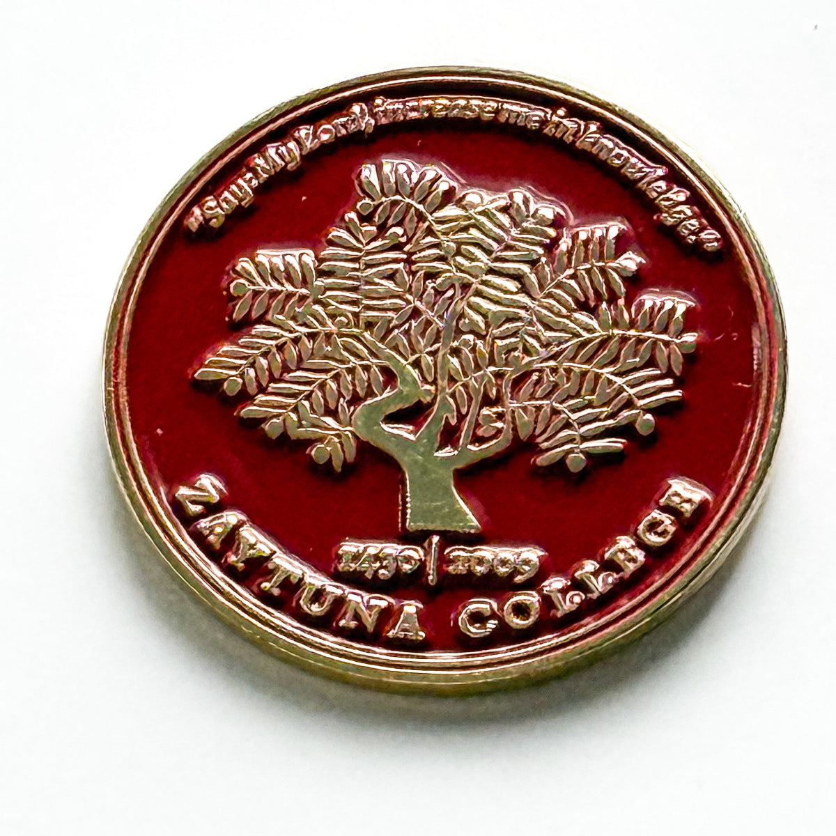 Round metal pin with the Zaytuna College Seal.